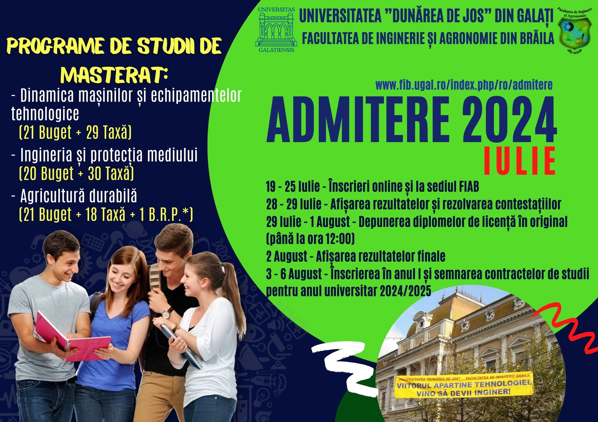 - Candidații la admiterea din 2024, ai căror părinți sunt absolvenți ai Universității „Dunărea de Jos” din Galați, beneficiază de o reducere de 50 de lei la plata taxei de înscriere, pentru un singur dosar de concurs. Aceștia prezintă, la înscriere, o copie după diploma de absolvire a părintelui.